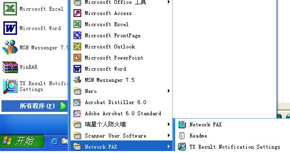 1、點擊“開始”→“程序” →“Network Fax” →“Network Fax”,打開網絡傳真應用程序