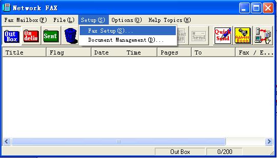 2、在彈出的窗口中點擊“Setup”→“Fax Setup”,彈出網絡傳真設置對話框