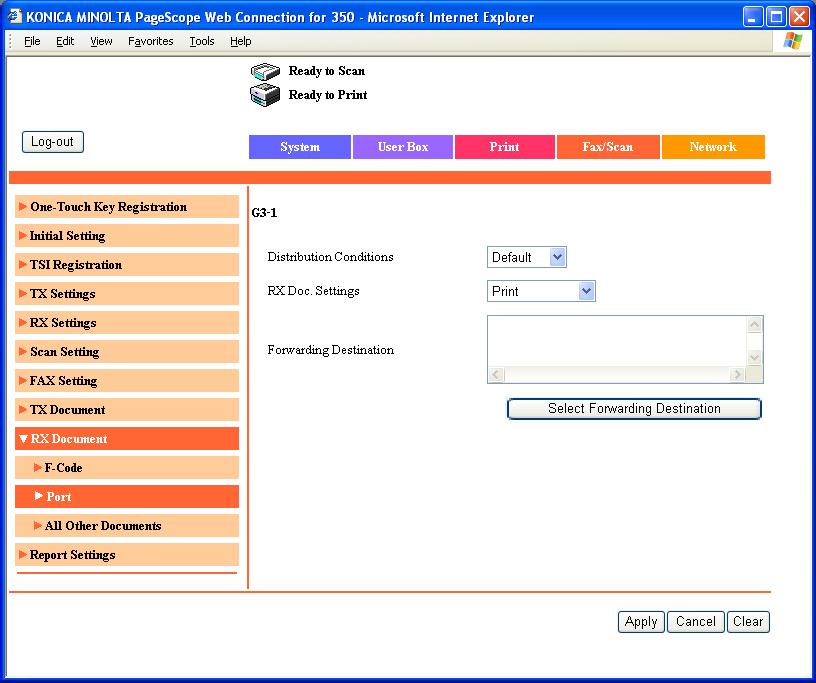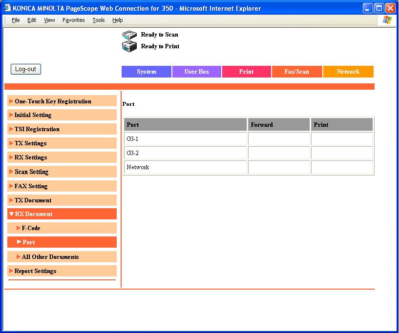 “FAX / SCAN”—“RX Document”—“Port”—“G3”