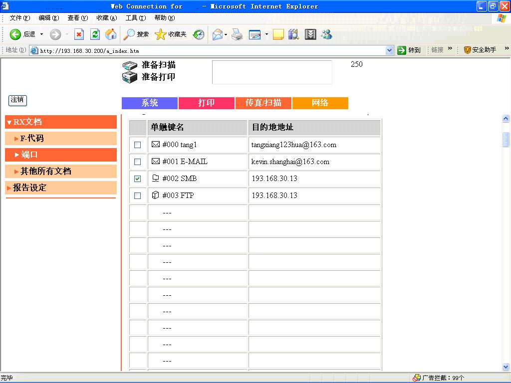 1.在IE瀏覽器中輸入掃描的IP地址,然后再輸入“00000000”進入管理員模式。選擇
