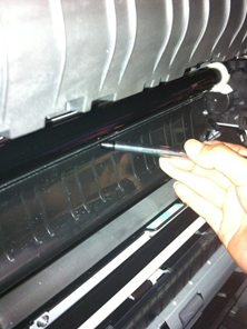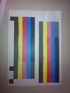 現(xiàn)象:轉(zhuǎn)印帶上面分離針把轉(zhuǎn)印帶劃破,更換新的轉(zhuǎn)印帶后效果如下圖