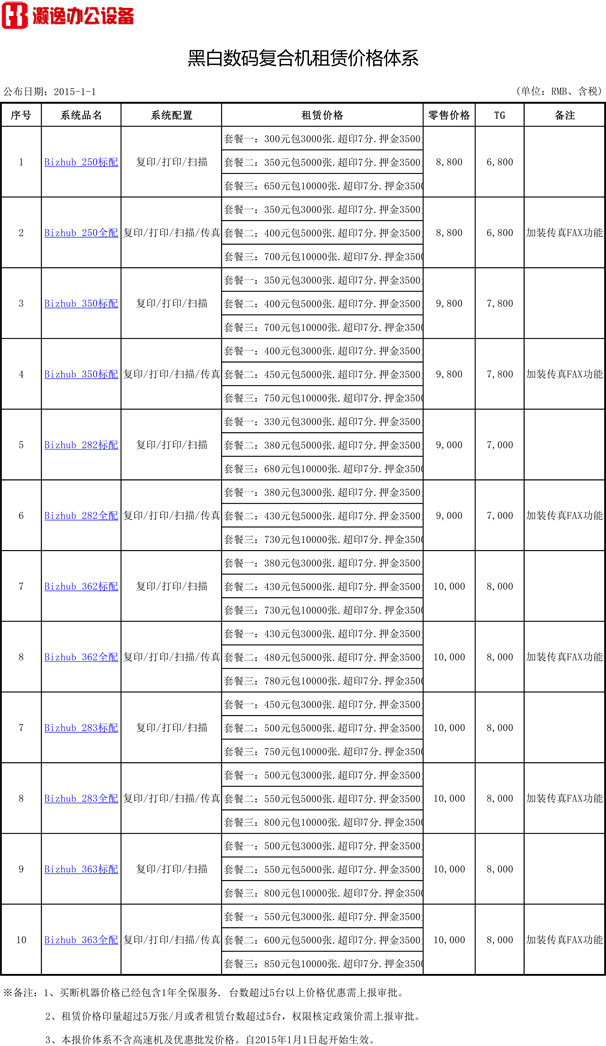以下為我司2015年辦公設備黑白數碼復合機租賃市場指導價格。歡迎廣大佛山復印機顧客來點垂詢.黑白復印機出租熱線:0757-82256309! |