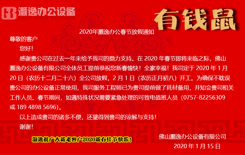 祝廣大新老客戶2020新春快樂!鼠年鼠你最帥!